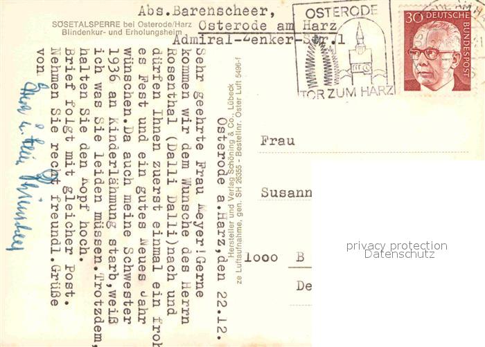 72930558 alte Postkarte Osterode Harz Soesetalsperre Blindenkurheim Erholungsheim Fliegeraufnahme postalisch gelaufen Erhaltung siehe scans [FriedD77] KatCode: 11110003156011