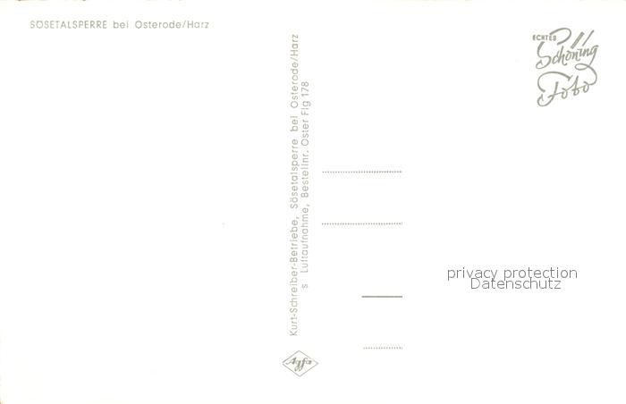 43495769 Osterode Harz Soesetalsperre Fliegeraufnahme postalisch nicht gelaufen Erhaltung siehe scans [WerneD78] KatCode: 11110003156011