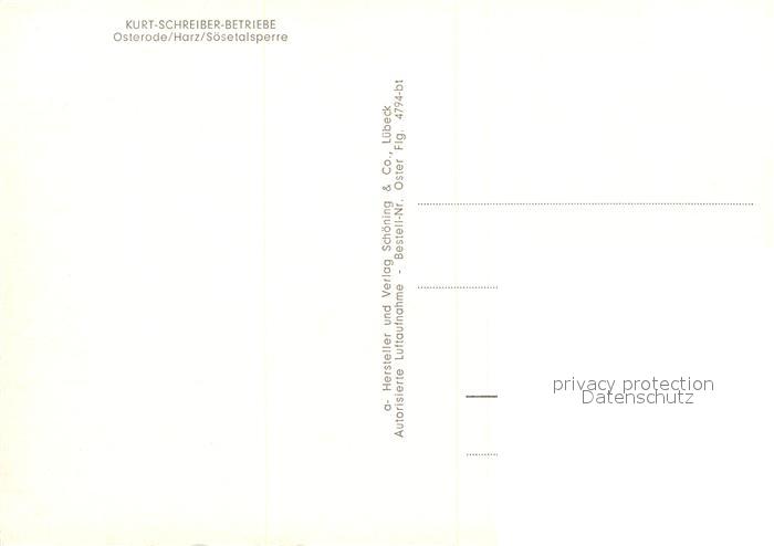 73125222 Osterode Harz Soesetalsperre Fliegeraufnahme postalisch nicht gelaufen Erhaltung siehe scans [NatalD47] KatCode: 11110003156011
