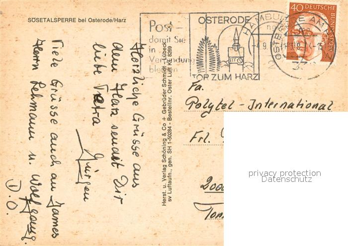 73688419 alte Postkarte Osterode Harz Soesetalsperre Stausee Fliegeraufnahme postalisch gelaufen Erhaltung siehe scans [FriedD77] KatCode: 11110003156011