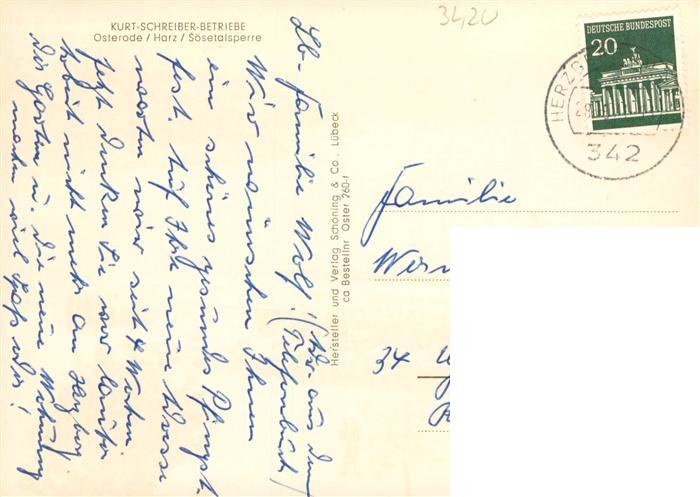 73944439 alte Postkarte Osterode Harz Soesetalsperre postalisch gelaufen Erhaltung siehe scans [FriedD77] KatCode: 11110003156011