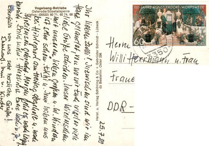 73877877 alte Postkarte Osterode Harz Vogelsang Betriebe Soesetalsperre Fliegeraufnahme postalisch gelaufen Erhaltung siehe scans [WerneD78] KatCode: 11110003156011