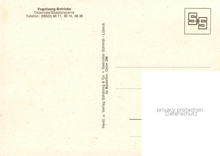 73132237 Osterode Harz Vogelsang Betriebe Sosetalsperre postalisch nicht gelaufen Erhaltung siehe scans [KathaD81] KatCode: 11110003156011