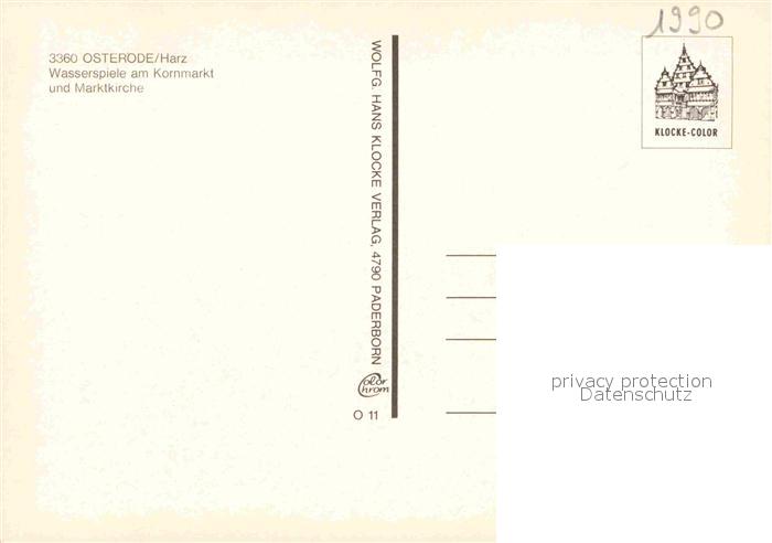 72898845 Osterode Harz Wasserspiele am Kornmarkt mit Marktkirche postalisch nicht gelaufen Erhaltung siehe scans [FriedD77] KatCode: 11110003156011