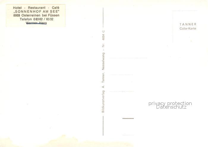 73688518 Osterreinen Forggensee Hotel Restaurant Sonnenhof am See Schloss Hohenschwangau Fuessen Schloss Neuschwanstein Tegelbergbahn Saeuling postalisch nicht gelaufen Erhaltung siehe scans [WerneD78] KatCode: 11110009777163