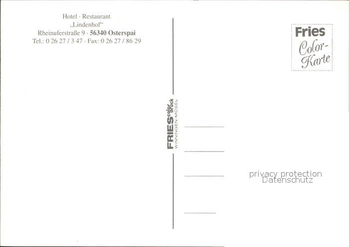 72496930 Osterspai Hotel Restaurant Lindenhof Terrasse postalisch nicht gelaufen Erhaltung siehe scans KatCode: 11110007141108