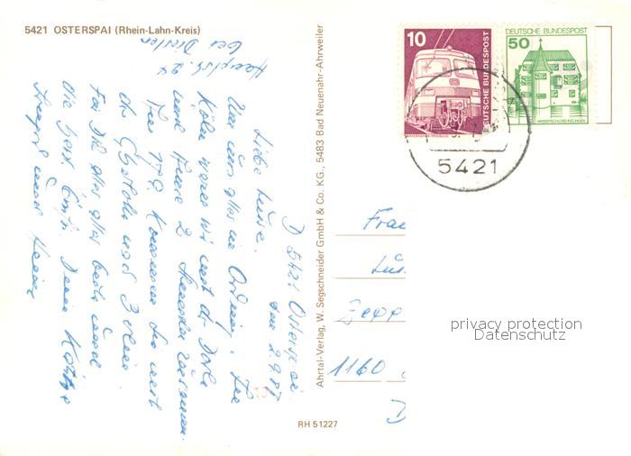 73670687 alte Postkarte Osterspai Panorama Fachwerkhaeuser Strassenpartie postalisch gelaufen Erhaltung siehe scans [WerneD78] KatCode: 11110007141108