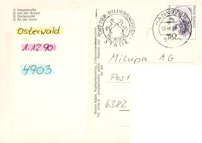 73870668 alte Postkarte Osterwald Unterende Hauptstrasse Auf der Brokel Dorfansicht Partie an der Auter postalisch gelaufen Erhaltung siehe scans [FriedD77] KatCode: 11110003241005