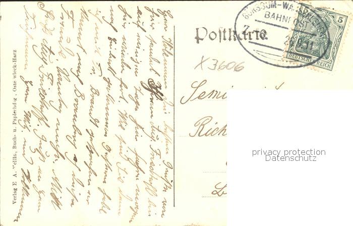 32211941 alte Postkarte Osterwieck Marktplatz Eingang Kapellenstrasse postalisch gelaufen Erhaltung siehe scans KatCode: 11110015085230