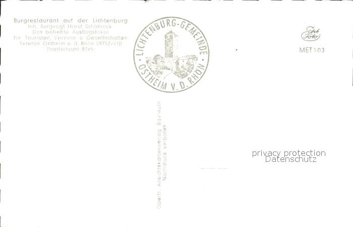 72374963 Ostheim Rhoen Burgrestaurant auf der Lichtenburg postalisch nicht gelaufen Erhaltung siehe scans KatCode: 11110009673153