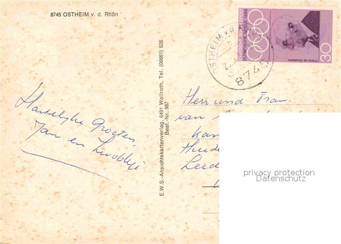 72739056 alte Postkarte Ostheim Rhoen Panorama Altstadt Turm Wappen postalisch gelaufen Erhaltung siehe scans [FriedD77] KatCode: 11110009673153