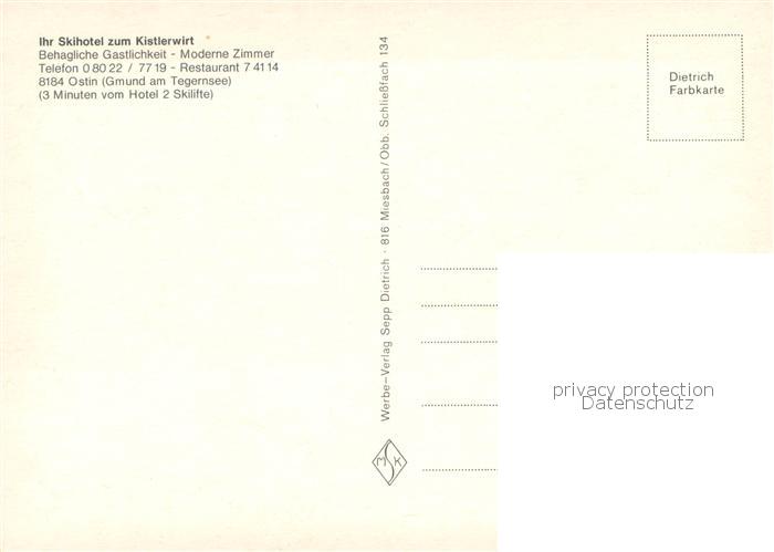 73763007 Ostin Tegernsee Skihotel zum Kistlerwirt Winterlandschaft Alpen postalisch nicht gelaufen Erhaltung siehe scans [FriedD77] KatCode: 11110009182116