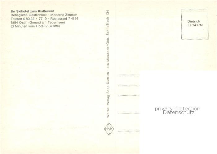 73763906 Ostin Tegernsee Skihotel zum Kistlerwirt Winterlandschaft postalisch nicht gelaufen Erhaltung siehe scans [FriedD77] KatCode: 11110009182116
