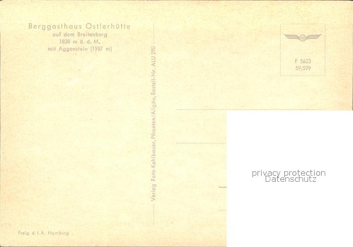 71822007 Ostlerhuette Berggasthaus auf dem Breitenberg mit Aggenstein postalisch nicht gelaufen Erhaltung siehe scans KatCode: 11110009777159