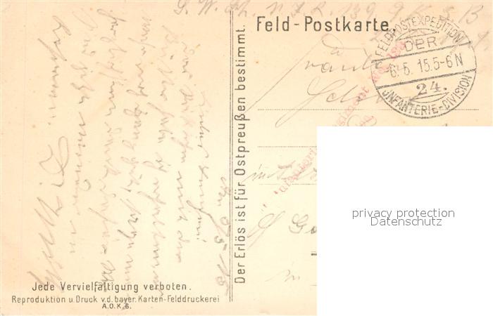33557759 old postcard Ostpreussen Region General Feldmarschall von Hindenburg 1915 postalisch gelaufen Feldpostexpedition (Stempel) Erhaltung siehe scans [WerneD78] KatCode: 11410
