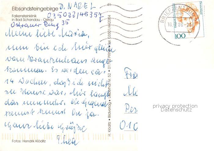 73858610 alte Postkarte Ostrau Bad Schandau Falkensteinklinik Panorama Saechsische Schweiz Elbsandsteingebirge postalisch gelaufen Erhaltung siehe scans [FriedD77] KatCode: 11110014287020