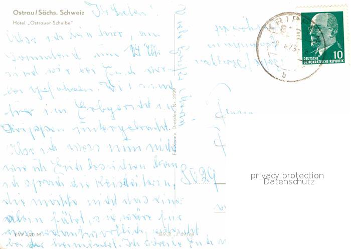 72630546 alte Postkarte Ostrau Sachsen Hotel Ostrauer Scheibe postalisch gelaufen Erhaltung siehe scans [LiesaD40] KatCode: 11110014375140