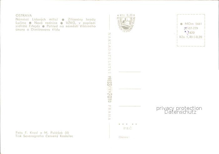 Ostrava Denkmal Burgruine Platz Rathaus postalisch nicht gelaufen Erhaltung siehe scans