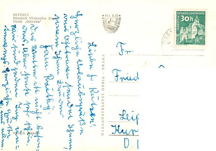 73864214 Ostrava Maehrisch Ostrau CZ Namesti Vitezneho unora Hotel Ostrava postalisch gelaufen Erhaltung siehe scans [FriedD77] old postcard Frie Katcode 11520