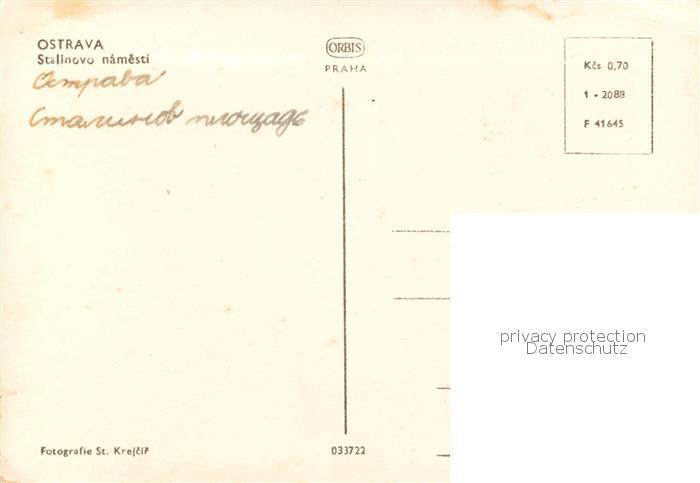 73851509 Ostrava Maehrisch Ostrau CZ Stalinovo namesti postalisch nicht gelaufen Erhaltung siehe scans [FriedD77] Frie Katcode 11520