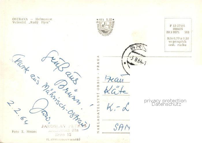 32984262 old postcard Ostrava Rudy rijen postalisch gelaufen Erhaltung siehe scans [NatalD47] KatCode: 11520