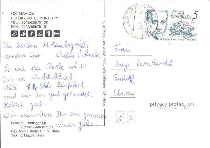 old postcard Ostravice Horsky Hotel Monter postalisch gelaufen Erhaltung siehe scans
