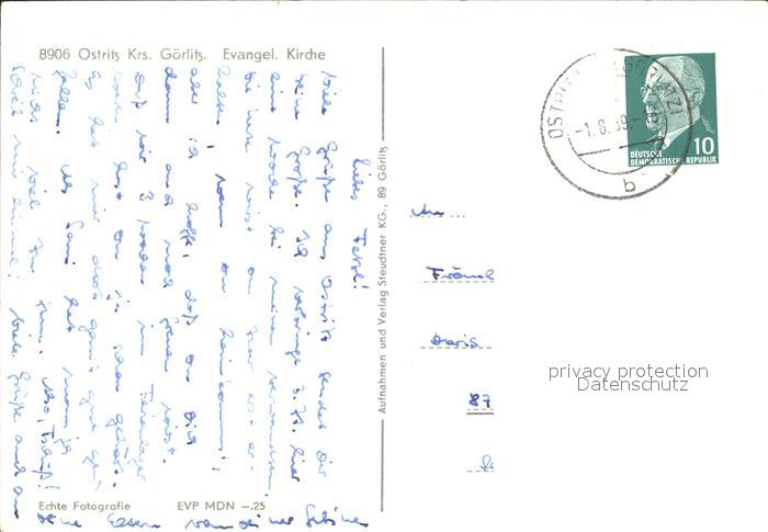 72137138 alte Postkarte Ostritz Kirche postalisch gelaufen Erhaltung siehe scans KatCode: 11110014286340