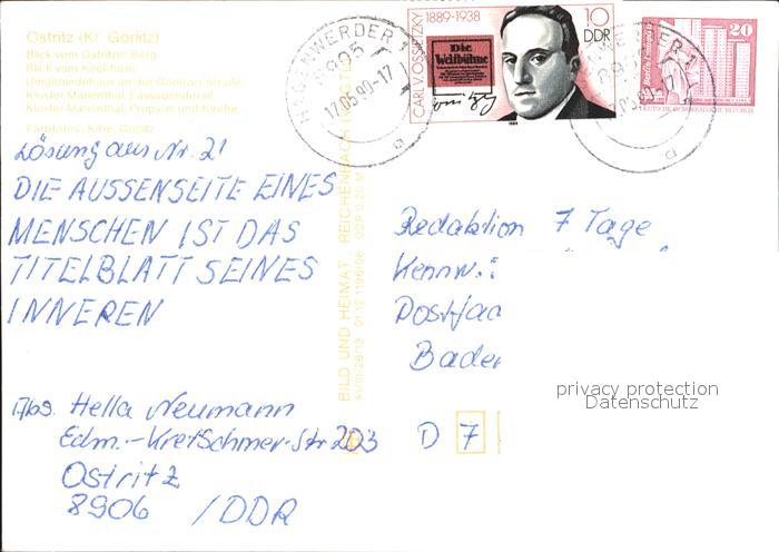 72379234 alte Postkarte Ostritz Ostritzer Berg Kirchturm Kloster Marienthal postalisch gelaufen Erhaltung siehe scans KatCode: 11110014286340