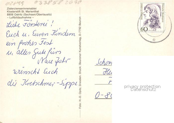 73657112 alte Postkarte Ostritz Zisterzienserinnenabtei Klosterstift St. Marienthal Fliegeraufnahme postalisch gelaufen Erhaltung siehe scans [FriedD77] KatCode: 11110014286340
