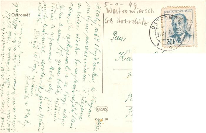 73958180 old postcard Ostromer Horschitz CZ Hauptstrasse postalisch gelaufen Erhaltung siehe scans [FriedD77] KatCode: 11520