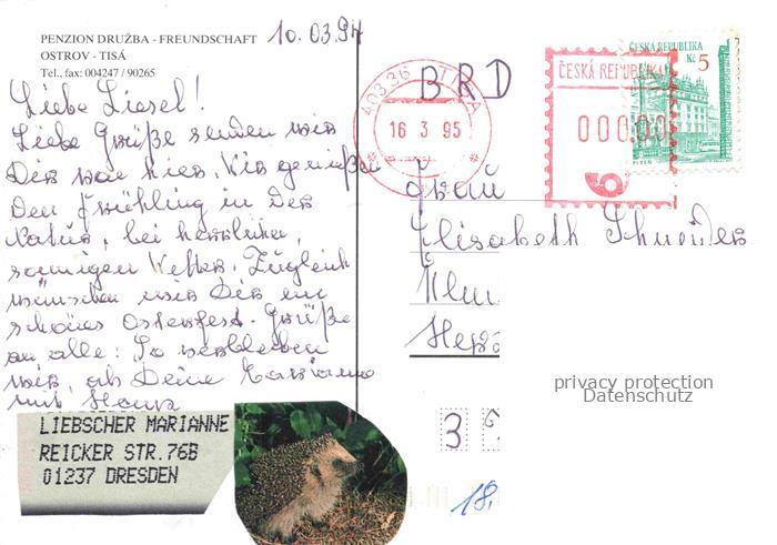 74027669 old postcard Ostrov u Tise Eiland Erzgebirge CZ Penzion Druzba Freundschaft Gastraum Panorama Badestrand postalisch gelaufen Erhaltung siehe scans [FriedD77] KatCode: 11520