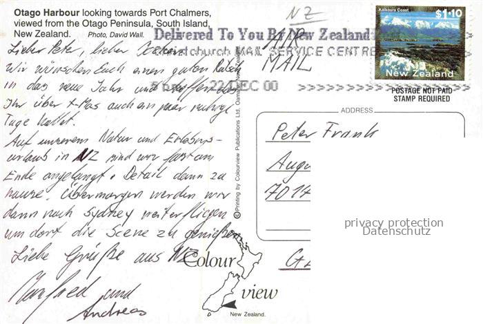 74137868 old postcard Otago NZ Otago Harbour Air view postalisch gelaufen Erhaltung siehe scans [WerneD78] KatCode: 19030