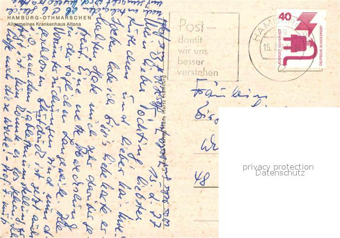 72686234 alte Postkarte Othmarschen Allgemeines Krankehaus Altona postalisch gelaufen Erhaltung siehe scans [WerneD78] KatCode: 11110002000000
