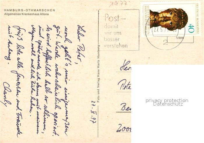 73063208 alte Postkarte Othmarschen Allgemeines Krankenhaus Altona postalisch gelaufen Erhaltung siehe scans [FriedD77] KatCode: 11110002000000