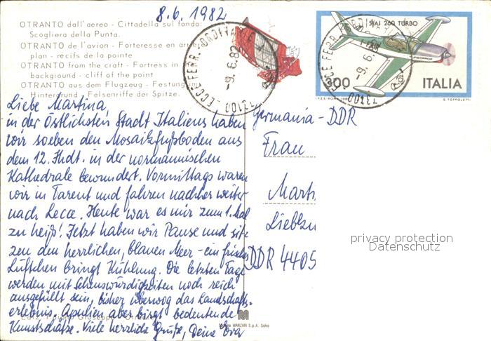 old postcard Otranto Italien Fliegeraufnahme Cittadella sul fondo Scogliera della Punta postalisch gelaufen Erhaltung siehe scans