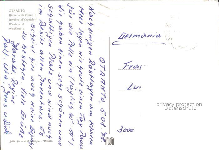 old postcard Otranto Italien Westkueste Riviera di Ponente postalisch gelaufen Erhaltung siehe scans