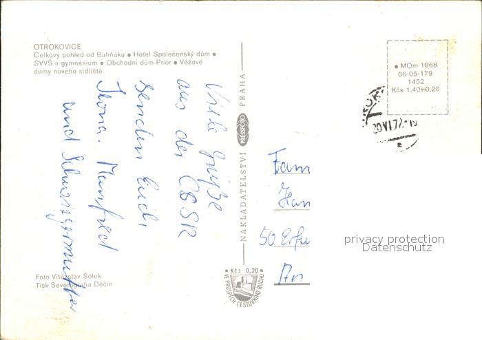 old postcard Otrokovice Hotel Spolecensky dum SVVS gymnasium postalisch gelaufen Erhaltung siehe scans