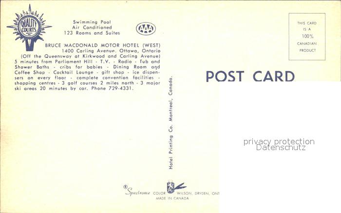 Ottawa Ontario Bruce Macdonald Motor Hotel postalisch nicht gelaufen Erhaltung siehe scans