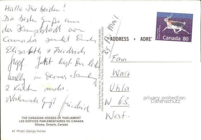 old postcard Ottawa Ontario The Canadian Houses of Parliament postalisch gelaufen Erhaltung siehe scans