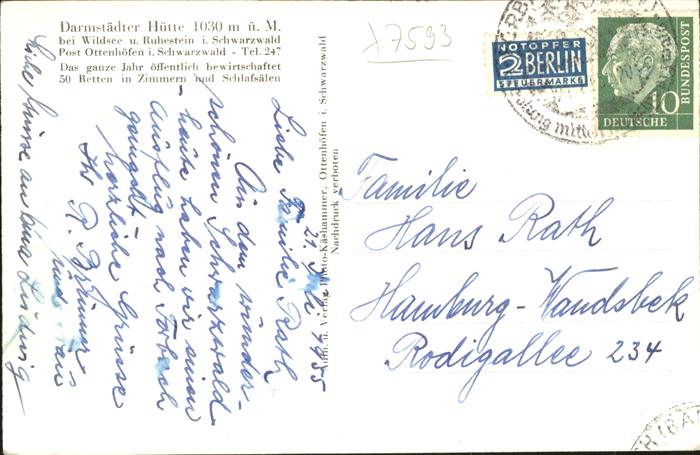41205052 Ottenhoefen Schwarzwald Darmstädter Hütte KatCode 11110008317102
