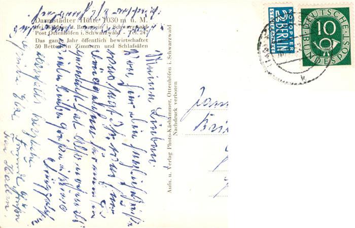 73902465 alte Postkarte Ottenhoefen Schwarzwald Darmstaedter Huette Huettenstube Wildsee Hochmoor postalisch gelaufen Erhaltung siehe scans [FriedD77] KatCode: 11110008317102