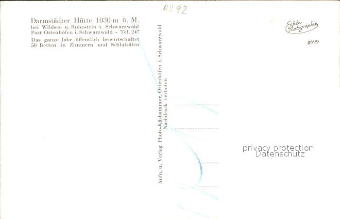 31705797 Ottenhoefen Schwarzwald Darmstaedter Huette Wildsee Hochmoor am Seekopf postalisch nicht gelaufen Erhaltung siehe scans KatCode: 11110008317102