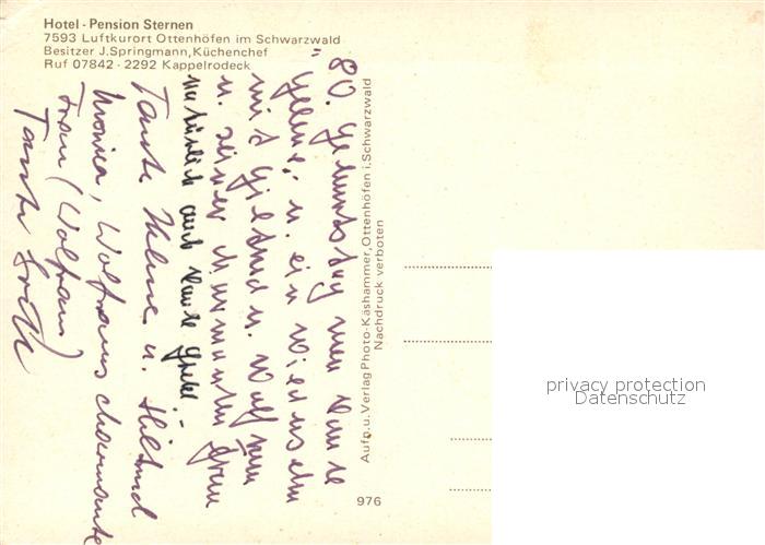 73056260 Ottenhoefen Schwarzwald Hotel Pension Sternen postalisch nicht gelaufen Erhaltung siehe scans [WerneD78] KatCode: 11110008317102