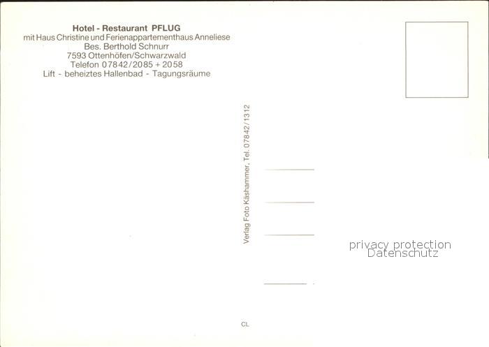 72094612 Ottenhoefen Schwarzwald Hotel Restaurant Pflug postalisch nicht gelaufen Erhaltung siehe scans KatCode: 11110008317102