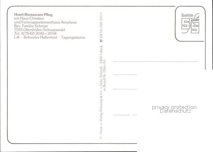 72157629 Ottenhoefen Schwarzwald Hotel Restaurant Pflug Ferienappartements Dampflokomotive postalisch nicht gelaufen Erhaltung siehe scans KatCode: 11110008317102
