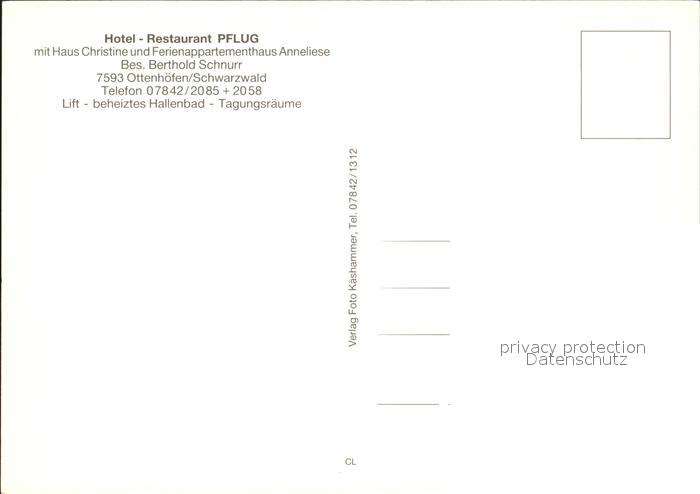 72156780 Ottenhoefen Schwarzwald Hotel Restaurant Pflug Hallenbad Ferienappartments postalisch nicht gelaufen Erhaltung siehe scans KatCode: 11110008317102