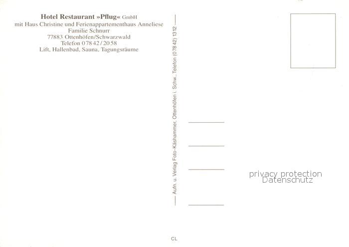 72931512 Ottenhoefen Schwarzwald Hotel Restaurant Pflug postalisch nicht gelaufen Erhaltung siehe scans [KathaD81] KatCode: 11110008317102