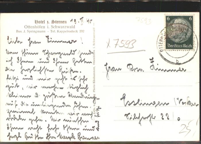 41040642 Ottenhoefen Schwarzwald Hotel Sternen KatCode 11110008317102
