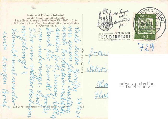 74084463 alte Postkarte Ottenhoefen Schwarzwald Hotel und Kurhaus Ruhestein postalisch gelaufen Erhaltung siehe scans [WerneD78] KatCode: 11110008317102