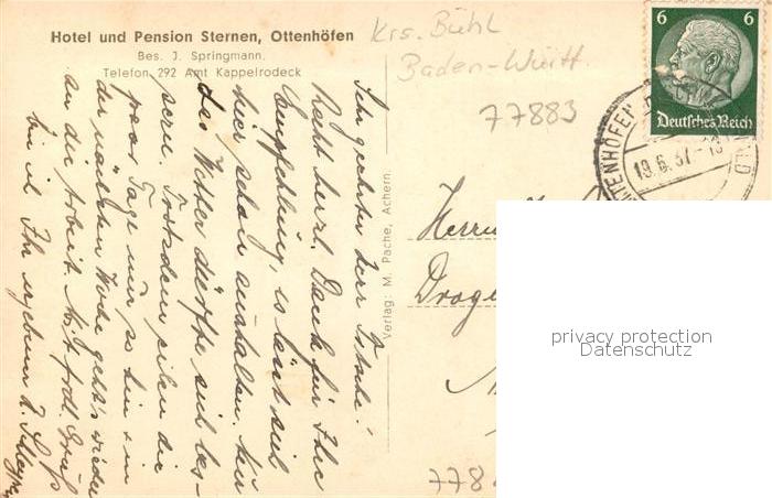 43075770 alte Postkarte Ottenhoefen Schwarzwald Hotel und Pension Sternen postalisch gelaufen Erhaltung siehe scans [FriedD77] KatCode: 11110008317102